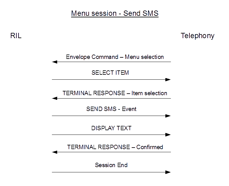 The Sim Toolkit communication flow is bi-directional and commands can originate from the STK RIL packaged in RIL_UNSOL_STK_PROACTIVE_COMMAND, RIL_UNSOL_STK_EVENT_NOTIFY, RIL_UNSOL_REFRESH and RIL_UNSOL_STK_SESSION_END messages.